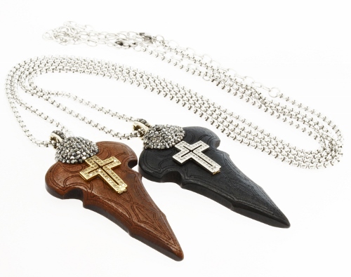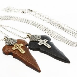PENDANT WITH ONE COPPER CROSS IN IPG COLOR WITH CZ
