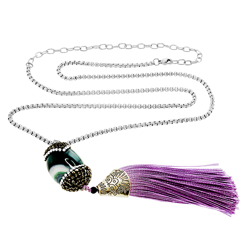 WITH BLACK AND WHITE CZ AROUND AND PURPLE CORD TASSEL