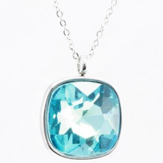 STAINLESS STEEL CHAIN WITH ONE PENDANT WITH BLUE CRYSTAL.