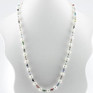 STAINLESS STEEL NECKLACE WITH RIVER PEARL AND CRYSTAL IN COLORS AND STEEL BALLS