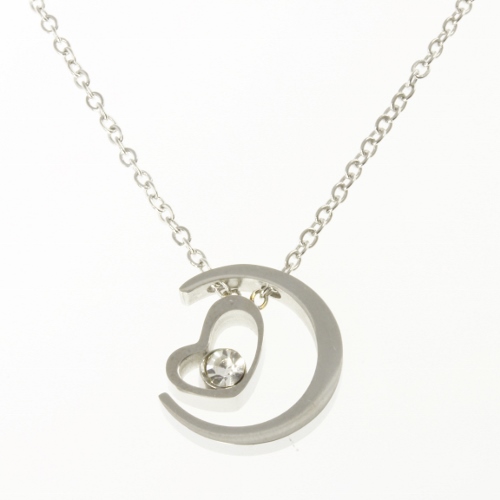 STAINLESS STEEL NECKLACE WITH PENDANT IN HEART SHAPE WITH ONE CZ