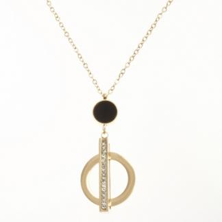 STAINLESS STEEL NECKLACE WITH A PENDANT WITH WHITE CRYSTALS AND BLACK IPB COLOR