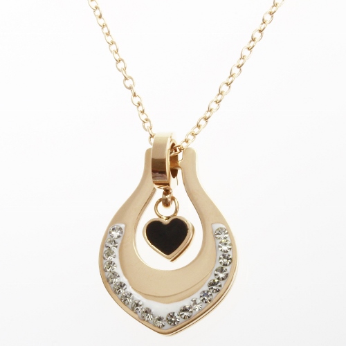 STAINLESS STEEL NECKLACE WITH A HEART PENDANT WITH WHITE CRYSTALS AND BLACK IPB COLOR BEAD