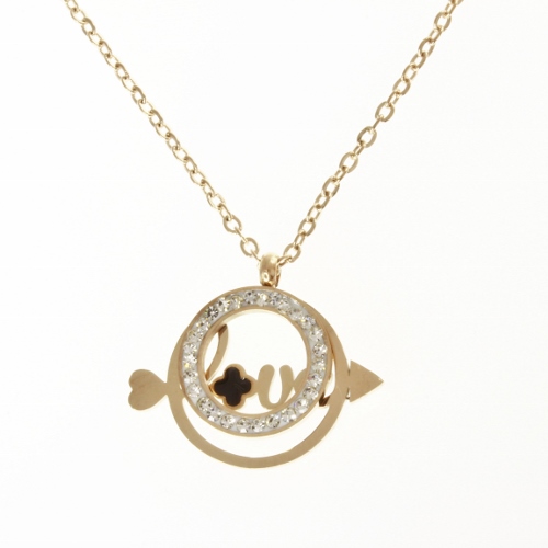 STAINLESS STEEL NECKLACE WITH A PENDANT WITH WHITE CRYSTALS AND LOVE BLACK IPB COLOR