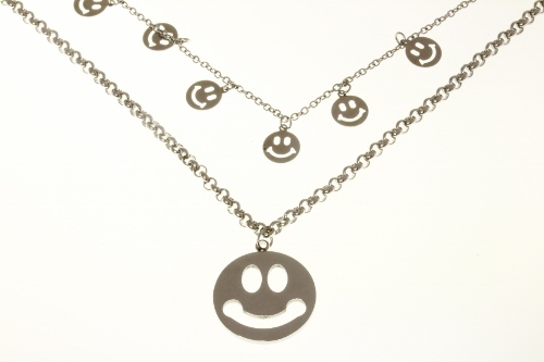 STAINLESS STEEL DOUBLE CHAIN WITH HAPPY FACE AND CENTER HAPPY FACE ALL IN S/S COLOR