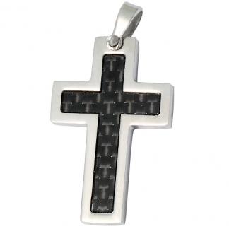 STAINLESS STEEL PENDANT Cross with black Carbon fibre