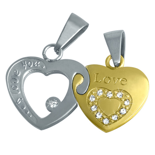 STAINLESS STEEL PENDANT Double Lover Hearts with cz In IPG two tones