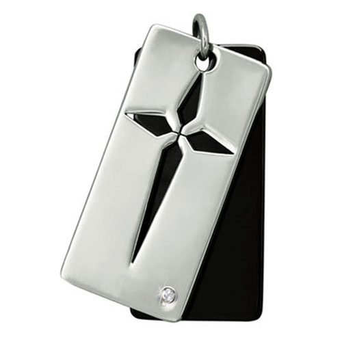 STAINLESS STEEL PENDANT IPB two tone w/ cz In Dog Tag Shape with Star Cut out
