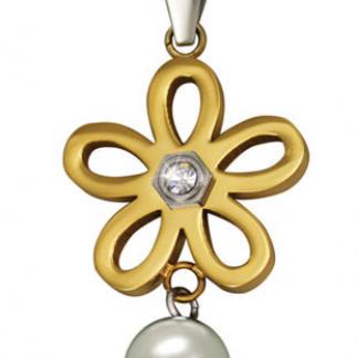 STAINLESS STEEL PENDANT In flower shape with cz With Pearl In IPG 2 tones
