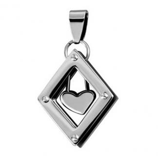 STAINLESS STEEL PENDANT In diamond shape with heart All in stainless steel color