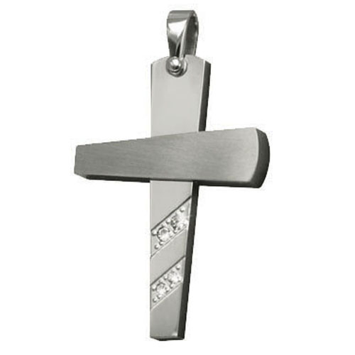 STAINLESS STEEL PENDANT In cross shape with CZ All in stainless steel
