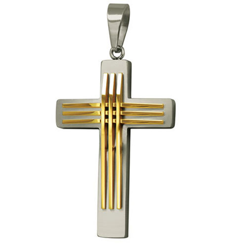 STAINLESS STEEL PENDANT In cross shape In IPG 2 tones