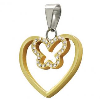 STAINLESS STEEL PENDANT In heart shape with CZ In IPG 2 tones