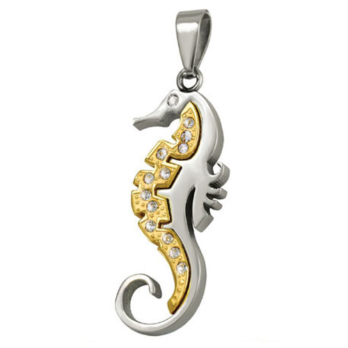 STAINLESS STEEL PENDANT Sea Horse with CZ IPG Two tone