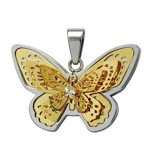 STAINLESS STEEL PENDANT In Butterfly shape with cz In IPG two tone