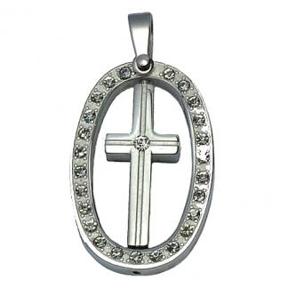 STAINLESS STEEL PENDANT In oval Shape with cross with CZ All in Stainless Steel color
