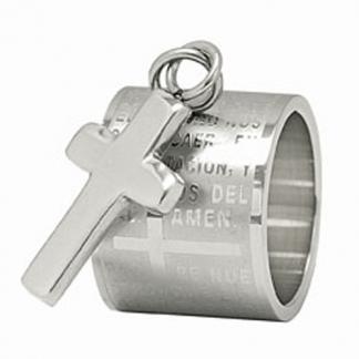 STAINLESS STEEL PENDANT In ring shape with cross with Bible verse