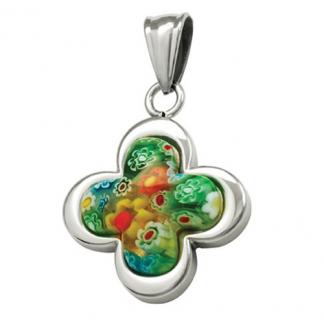 STAINLESS STEEL PENDANT Murano stone In trebol shape