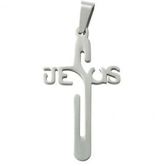 STAINLESS STEEL PENDANT In cross shape with JESUS Word All in stainless steel color