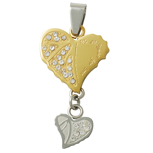 STAINLESS STEEL PENDANT In IPG two tone In Heart shape with cz