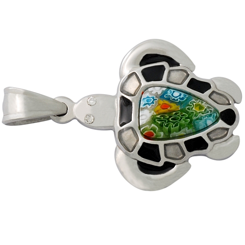 STAINLESS STEEL PENDANT In Tortoise shape with Murano Stone