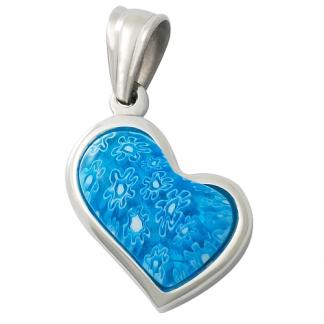 STAINLESS STEEL PENDANT In Heart shape with Blue murano stone