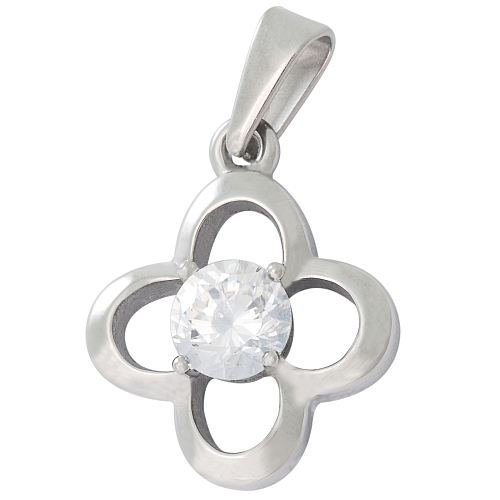 STAINLESS STEEL PENDANT In Flower shape with Round CZ