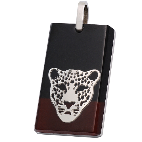 STAINLESS STEEL PENDANT With Panthers face With Black & Brown Resin