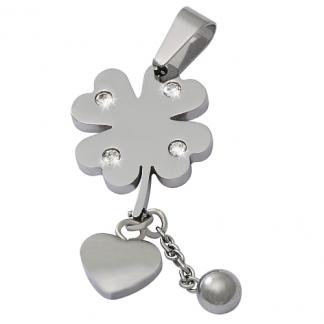 STAINLESS STEEL PENDANT In Trebol shape with cz With hanging heart with round link