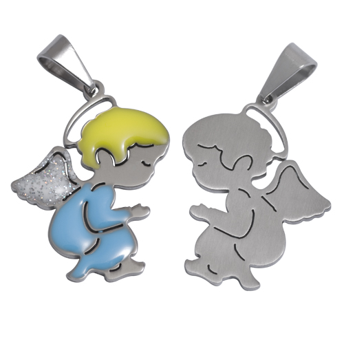 STAINLESS STEEL PENDANT Angel Boy Praying in yellow and blue enamel