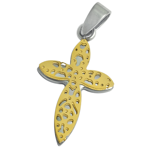 STAINLESS STEEL PENDANT In Cross Shape with cut out pattern on top IPG layer In IPG two tone