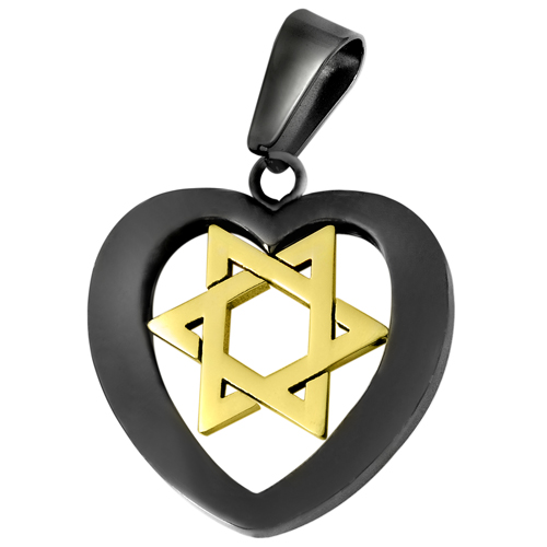 STAINLESS STEEL PENDANT In Heart shape with IPB and Star of David in IPG at centre