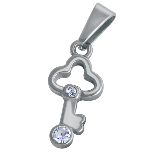 STAINLESS STEEL PENDANT In Little Key shape with two cz All in stainless steel color