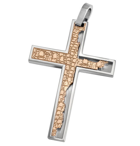 STAINLESS STEEL PENDANT IN CROSS SHAPE IN IP ROSE 2 TONE