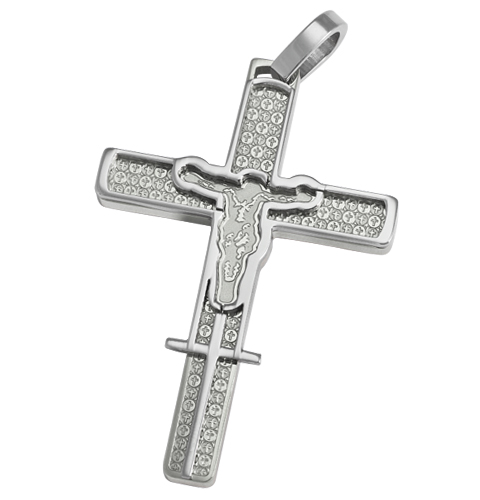 STAINLESS STEEL PENDANT IN CROSS SHAPE WITH JESUS SIGN ALL IN S/S COLOR