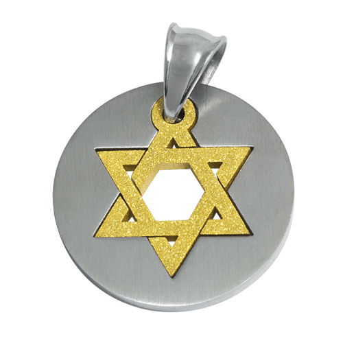 STAINLESS STEEL PENDANT IN CIRCLE SHAPE WITH SANDBLAST IN IPG 2 TONE (THE STAR CAN BE MOVED)