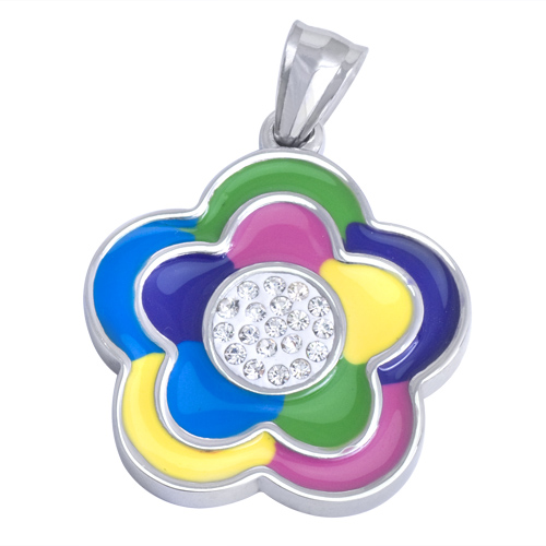 STAINLESS STEEL PENDANT IN COLORFUL FLOWER SHAPE WITH CZ