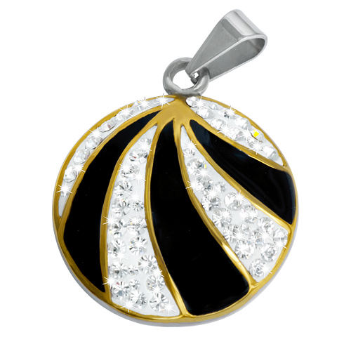 STAINLESS STEEL PENDANT IN CIRCLE SHAPE WITH CZ WITH BLACK COLOR IN IPG 2 TONE