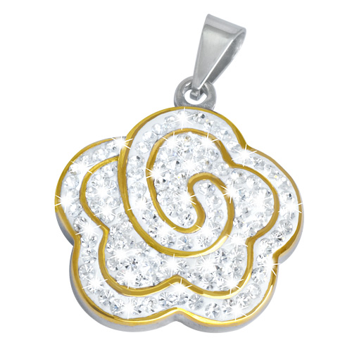STAINLESS STEEL PENDANT IN FLOWER SHAPE WITH CZ IN IPG 2 TONE