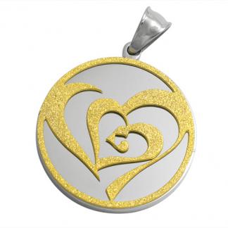 STAINLESS STEEL PENDANT IN CIRCLE SHAPE WITH SANDBLAST IN IPG 2 TONE