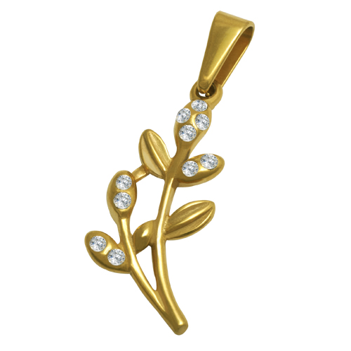 STAINLESS STEEL PENDANT IN LEAF SHAPE WITH CZ ALL IN IPG COLOR