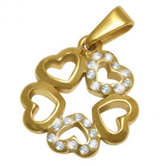 STAINLESS STEEL PENDANT WITH 5 HEARTS WITH CZ ALL IN IPG COLOR