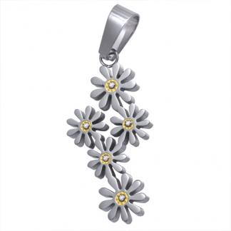 STAINLESS STEEL PENDANT IN 5 FLOWERS WITH CZ IN IPG 2 TONE