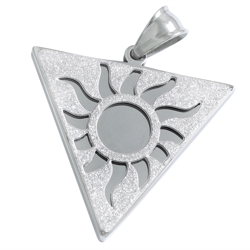 STAINLESS STEEL PENDANT IN TRIANGLE SHAPE WITH SUN IMAGE WITH SANDBLAST IN S/S COLOR