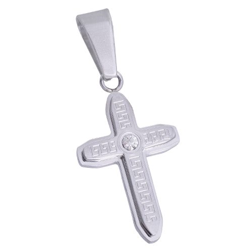STAINLESS STEEL PENDANT IN CROSS SHAPE WITH CZ