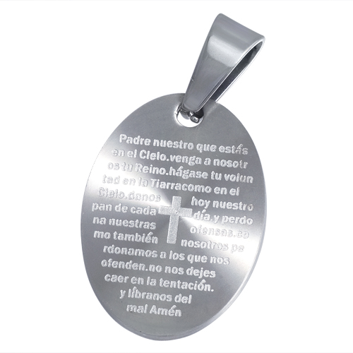 STAINLESS STEEL PENDANT IN OVAL SHAPE WITH CROSS WITH VERSE WITH LASER SHINNY EFFECT