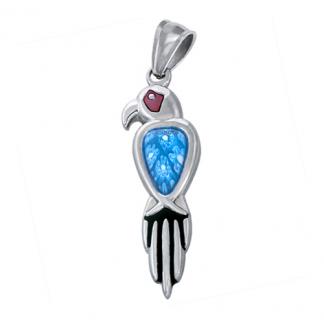 STAINLESS STEEL PENDANT IN BIRD SHAPE WITH BLUE MURANO STONE & BLACK ENAMEL (HAND/ HAMSA)