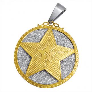 STAINLESS STEEL PENDANT IN CIRCLE SHAPE WITH STAR IN CENTER IN IPG 2 TONE