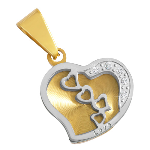 STAINLESS STEEL PENDANT IN HEART SHAPE IN IPG TWO TONE WITH LASER EFFECT WITH CZ