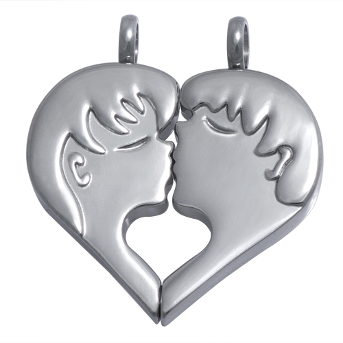 STAINLESS STEEL PENDANT WITH KISSING LOVERS IN HEART SHAPE ALL IN STEEL COLOR WITH MAGNET